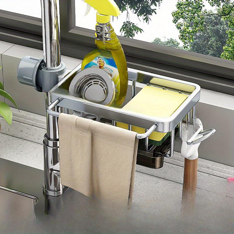 Полка для крана, Полка для хранения кухонной раковины из космического алюминия, Бытовая тряпка со сливным поддоном, Многофункциональная подвесная корзина