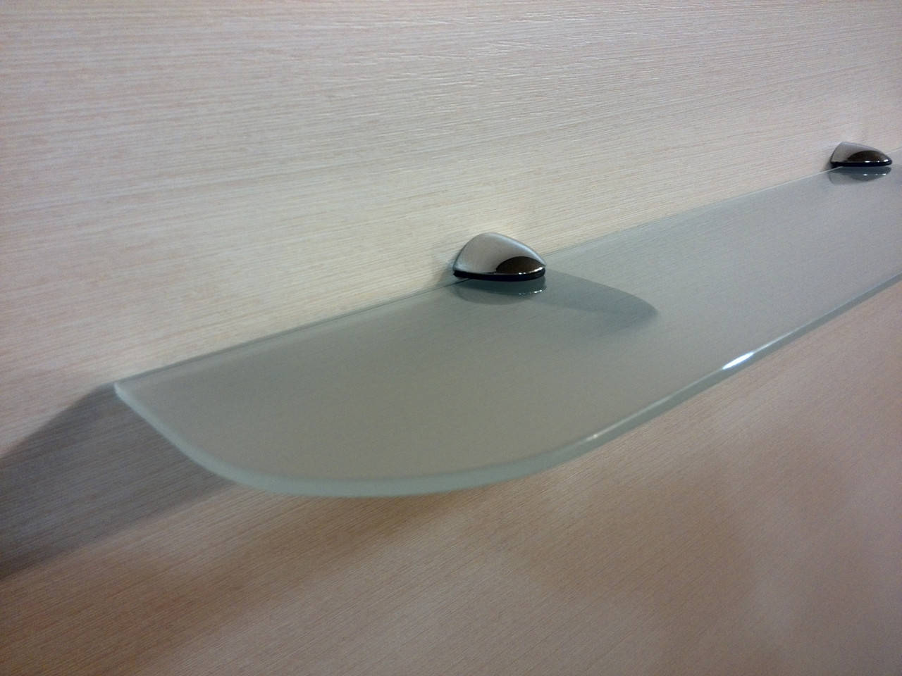 полка стеклянная толщиной 4 мм с обработанными краями, прямая, левый и правый углы заокругленные, белая матовая. Одна сторона глянцевая, другая матовая. Край стекла по периметру обработан и имеет полированный, гранённый вид. Габариты: 45 х 10 см. Полкодержатели (пеликаны, консоли и т.п.) в комплект не входят, но их возможно купить дополнительно (смотрите в разделе http://vitrocom.com.ua/g1954050-furnitura ).