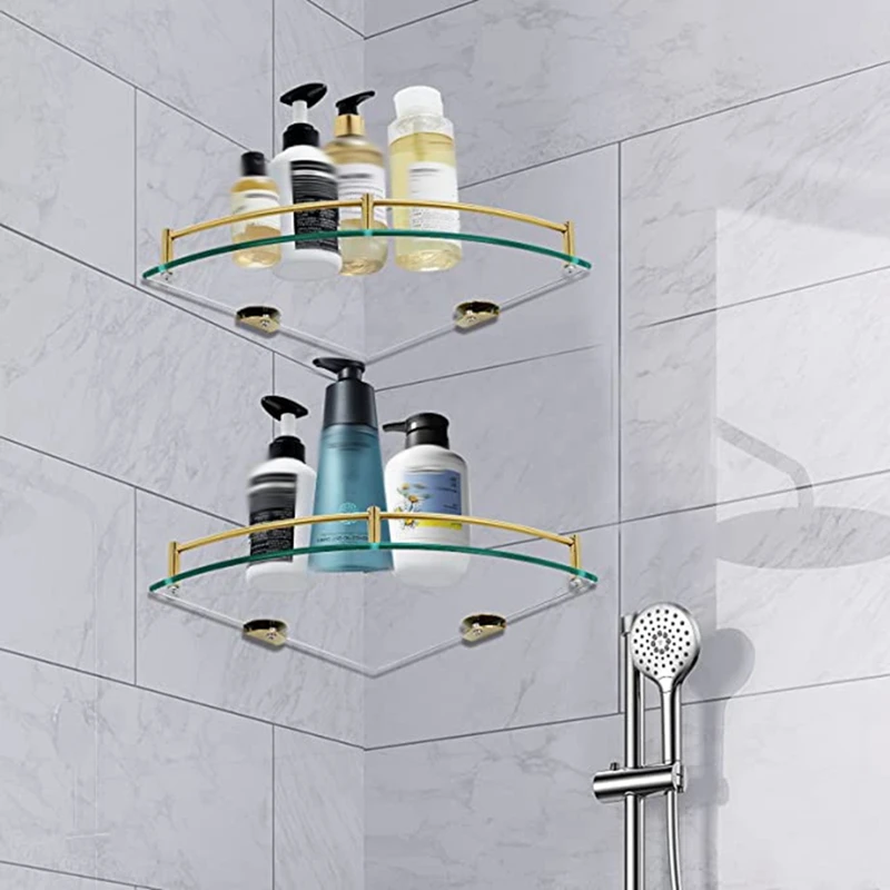 Полка угловая для ванной комнаты, полка из закаленного стекла для хранения геля/мыла