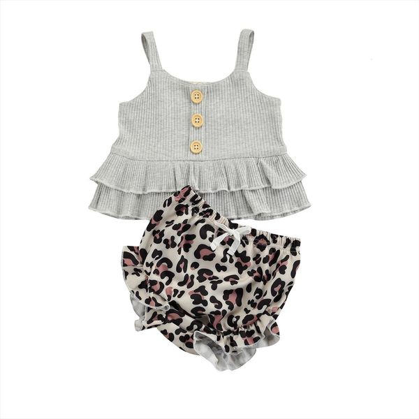 infant kids girls summer two piece set fashion solid color ruffles suspender and leopard triangle short pants 6m 4t, White