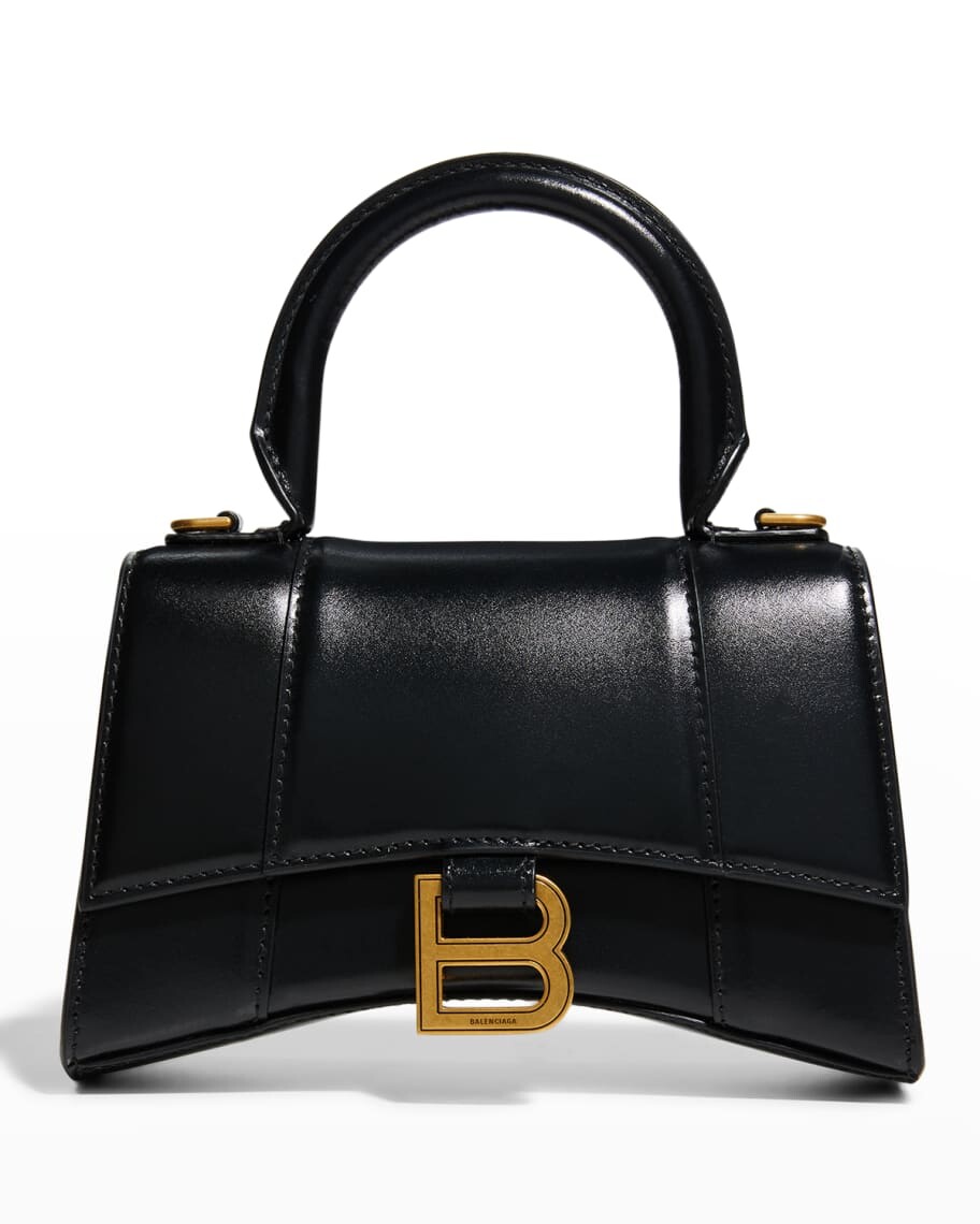 Сумка Hourglass XS Shiny Box из телячьей кожи с ручкой сверху Balenciaga, черный