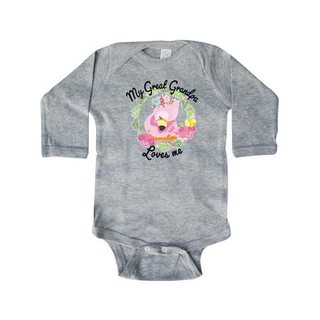 Inktastic Baby Flamingo My Great Grandpa Loves Me with Flower Wreath Gift Baby Boy or Baby Girl Long Sleeve Bodysuit