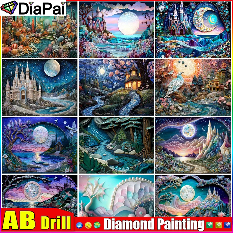 Полноформатная Алмазная картина DIAPAI AB «замок, луна», «сделай сам», 5D алмазная живопись, вышивка крестиком, домашний декор, картина из искусственных страз ручной работы