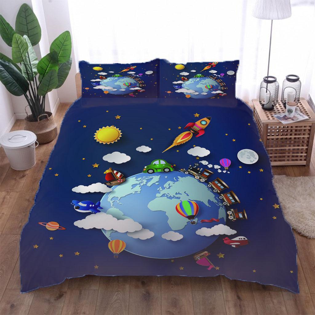 Полный комплект двуспальной кровати 3D Sky Planet пододеяльник покрывало 3 предмета узор пододеяльник комплект постельного белья для взрослых детей комплект постельного белья W90xL190cm