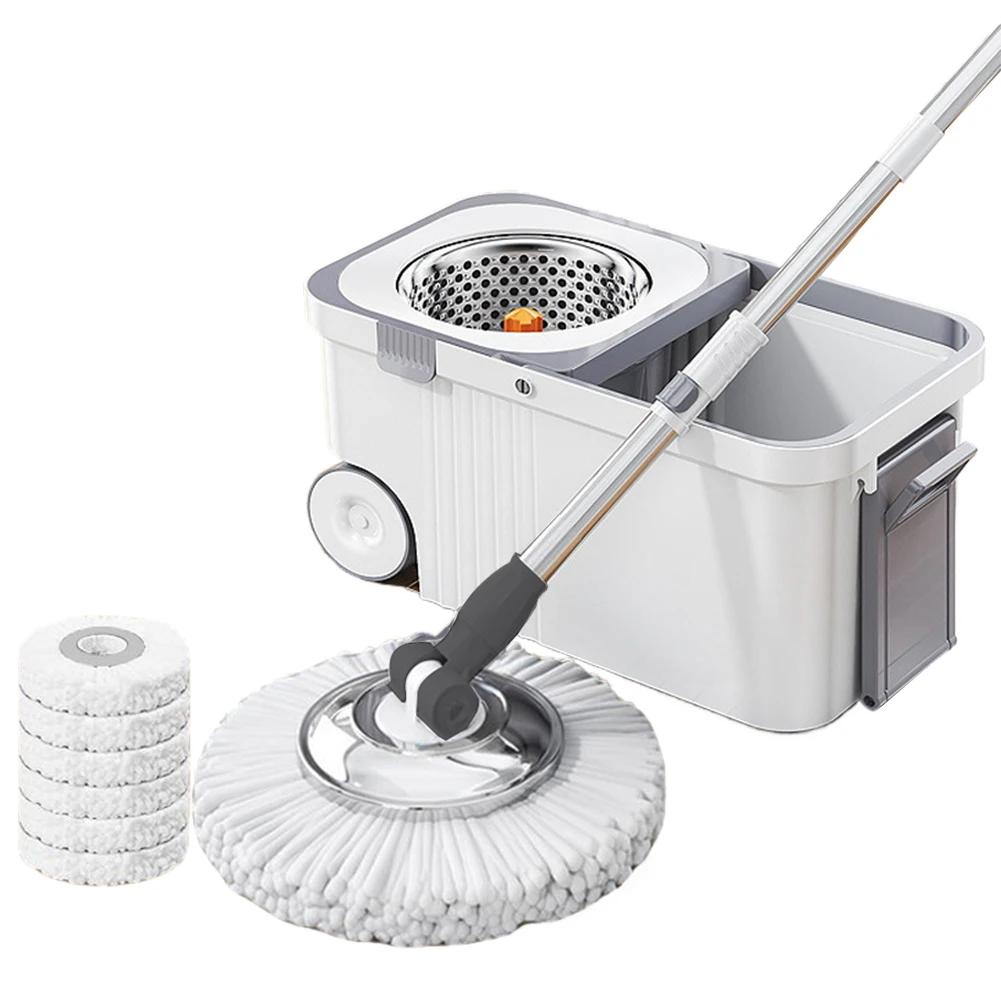 Поломоечная машина с 6 сменными насадками, удлиненная ручка, бытовая уборка, автоматическая швабра с отжимом для мытья полов в доме WHITE