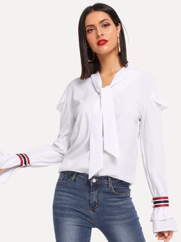 Полосатая блуза с воротник-бантом рукав с розеткой, Vero