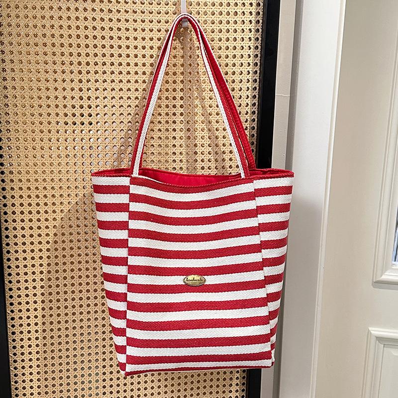 Полосатая повседневная сумка-подмышка на одно плечо, новая двусторонняя универсальная сумка-тоут для通勤 красный