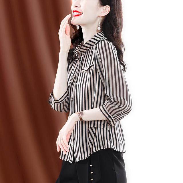 Полосатая рубашка для женщин, весна-осень, новая мода, топ с рукавом девять четвертей, верхняя блузка с воротником-поло, S-4XL S белый