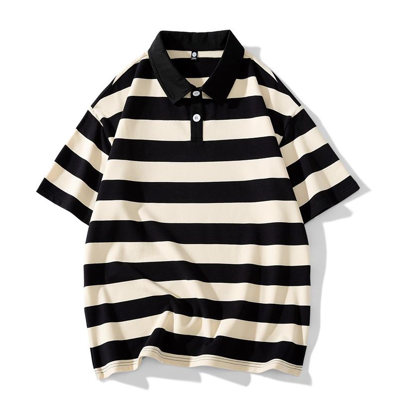 Полосатая рубашка-поло контрастных цветов на летней футболке с короткими рукавами XXL