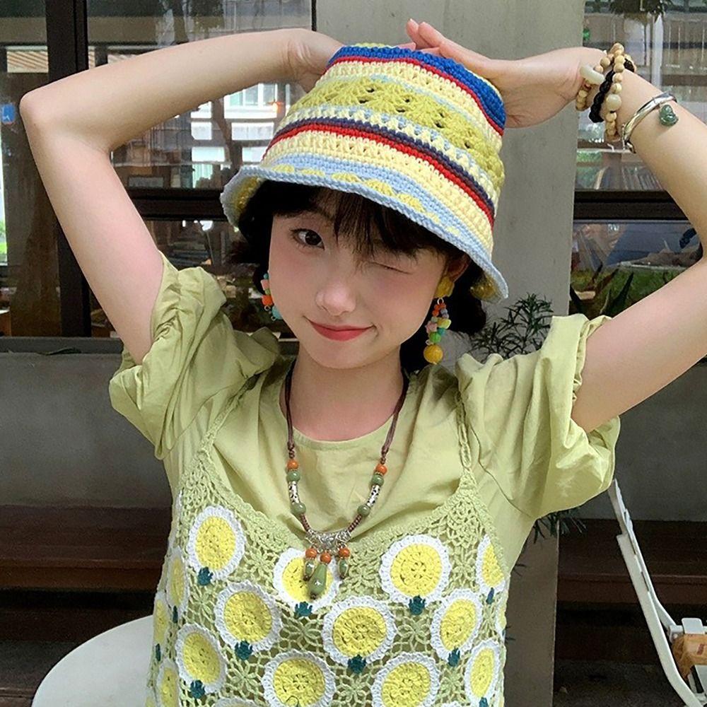 Полосатая рыбацкая шляпа с короткими полями и круглым верхом, шляпа ручной вязки, повседневная вязаная панама для женщин и девочек