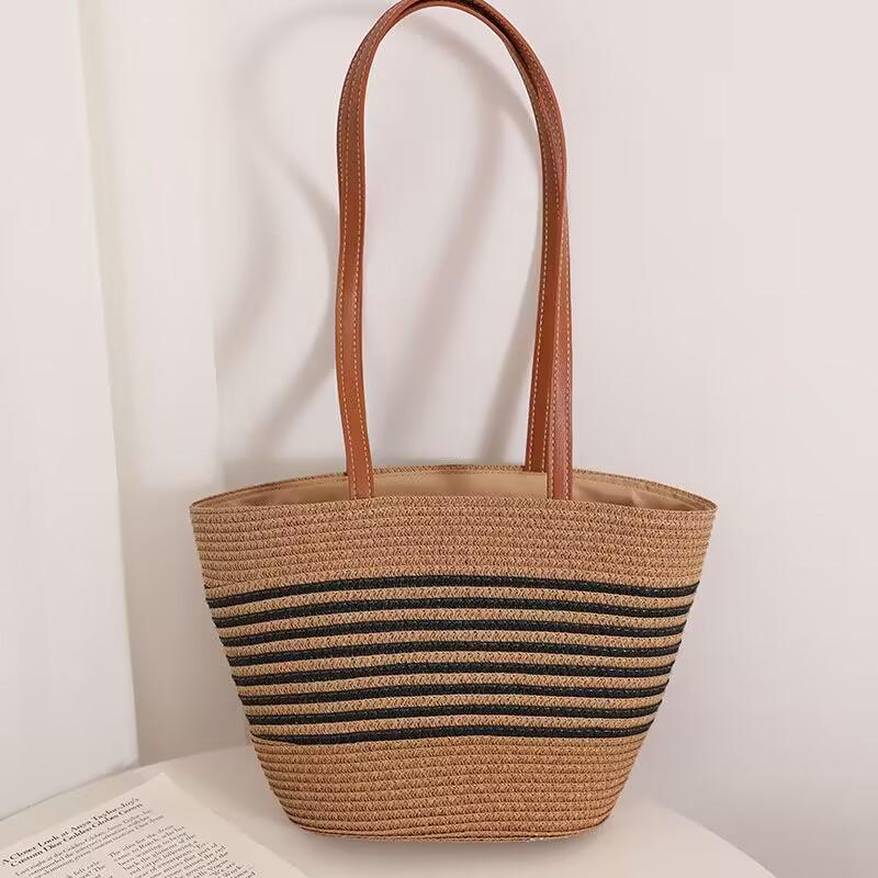 Полосатая сумка через плечо из соломы, плетеная сумка, летняя новая, вместительная, повседневная, универсальная, женская, пляжная, плетеная сумка из ротанга