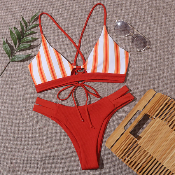 Многоцветный Сексуальный милый Нейлон Полосатые изображения Высокий Эластичный Бикини, size features are:Bust: ,Length: ,Sleeve Length: