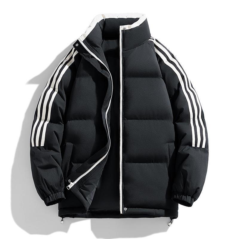 Полосатое пальто с капюшоном и хлопковой подкладкой, мужская зимняя новая свободная уличная модная молодежная повседневная теплая хлопковая куртка 4XL чёрный