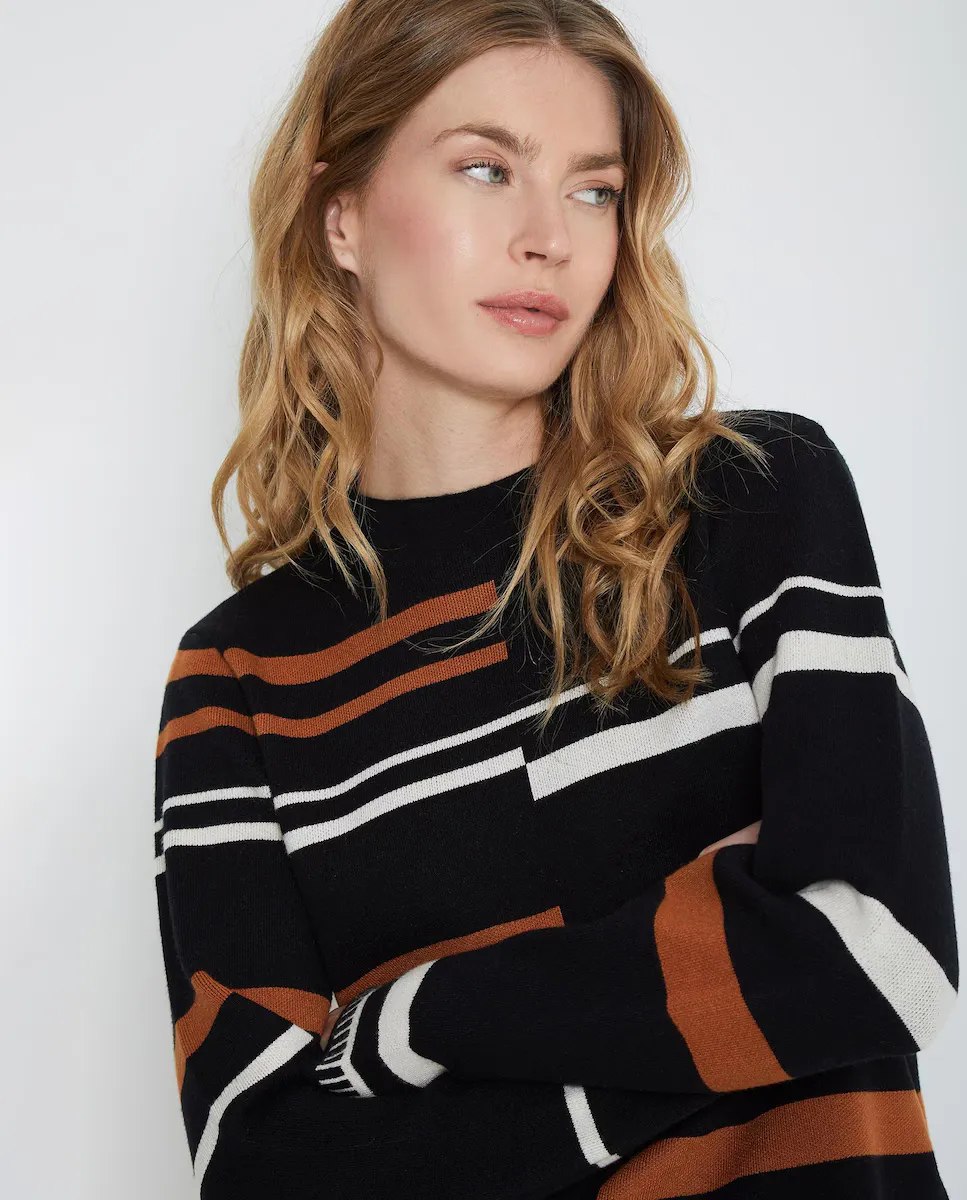 Полосатый женский свитер с воротником Перкинс Trucco, черный