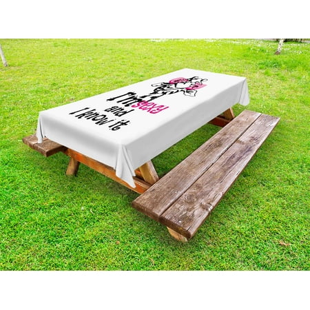 Giraffe Outdoor Tablecloth Funny Animal in Pink Glasses with Quote I am sexy and I know it Fashion Image Decorative Washable Fabric Picnic Tablecloth 58 X 104 Inches Pink Black White by Ambesonne