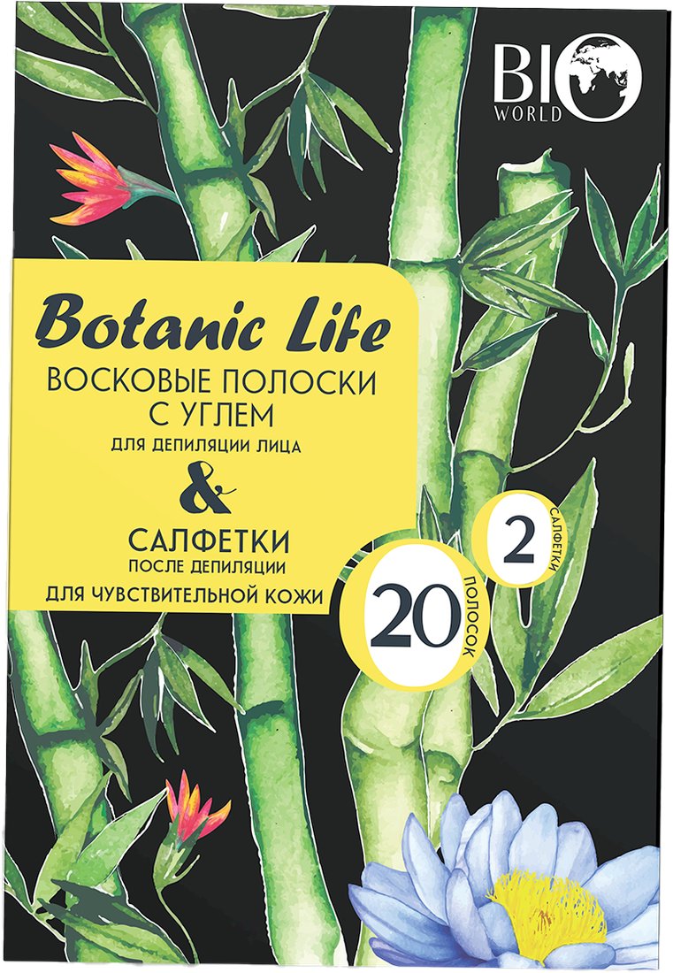 Полоска для депиляции Bio World Полоски с углем + Салфетки для чувствительной кожи лица (20 шт+2 шт)