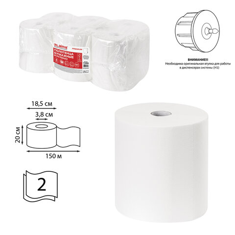 Полотенца бумажные Laima Premium H1, слоев: 2, длина 150м, белый, 6шт. (112505), H1