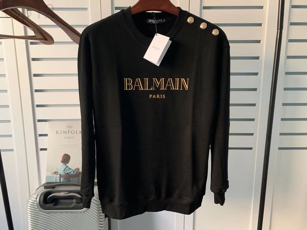 women's hoodies & sweatshirts designer 21ss autumn winter new balman shoulder gold button cotton loose pullover long sleeve sweater for, Black