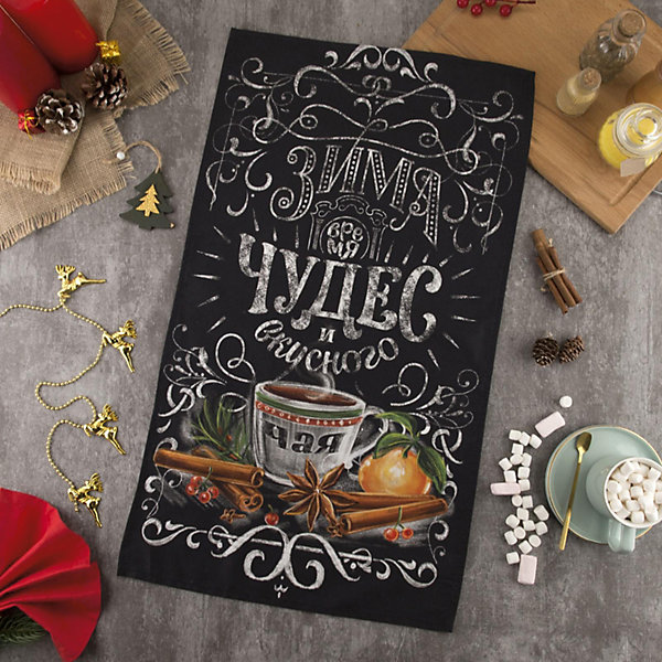 Полотенце Этель "Зима время чудес, Черный, Полотенце Этель "Зима время чудес"