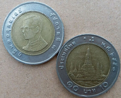 Used Condition 26mm Wat Arun Ten-baht Bi-metallic Coin Old series Young King Bhumibol Adulyadej Thailand