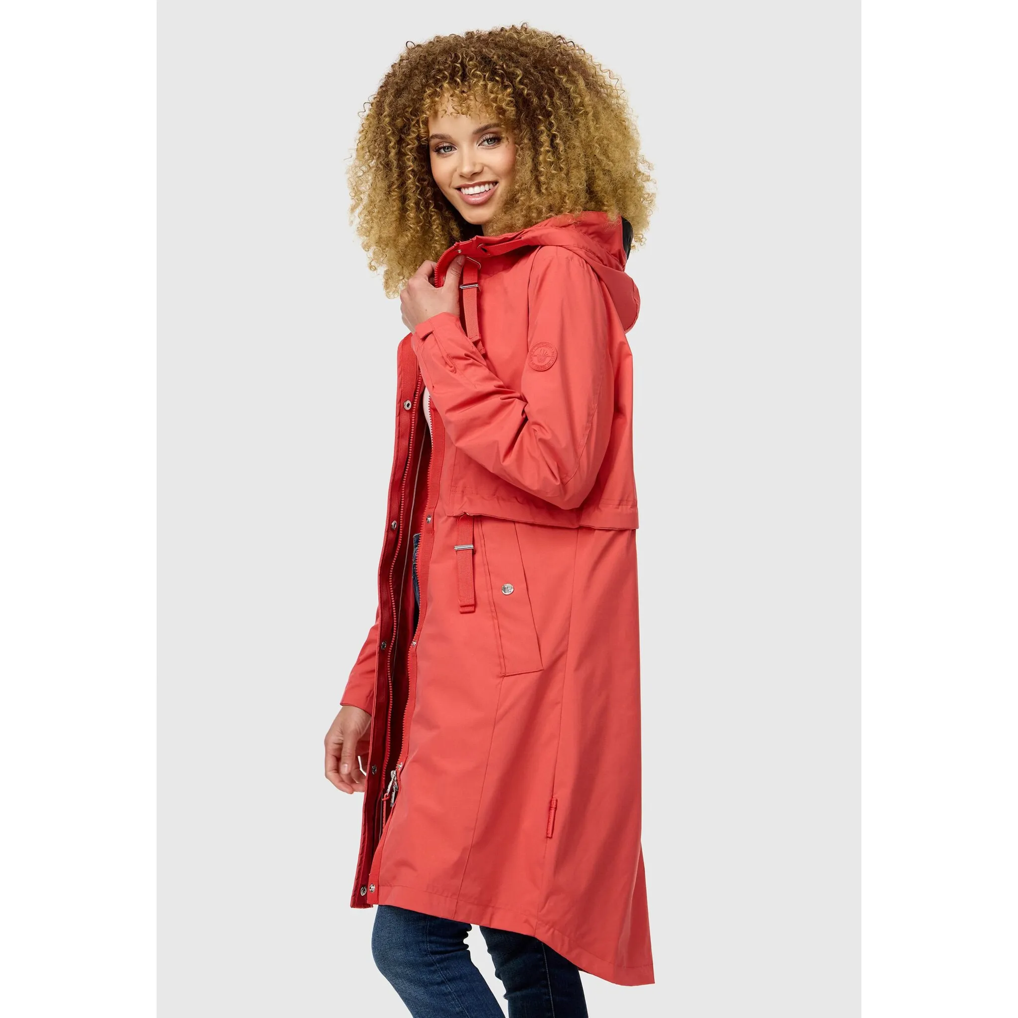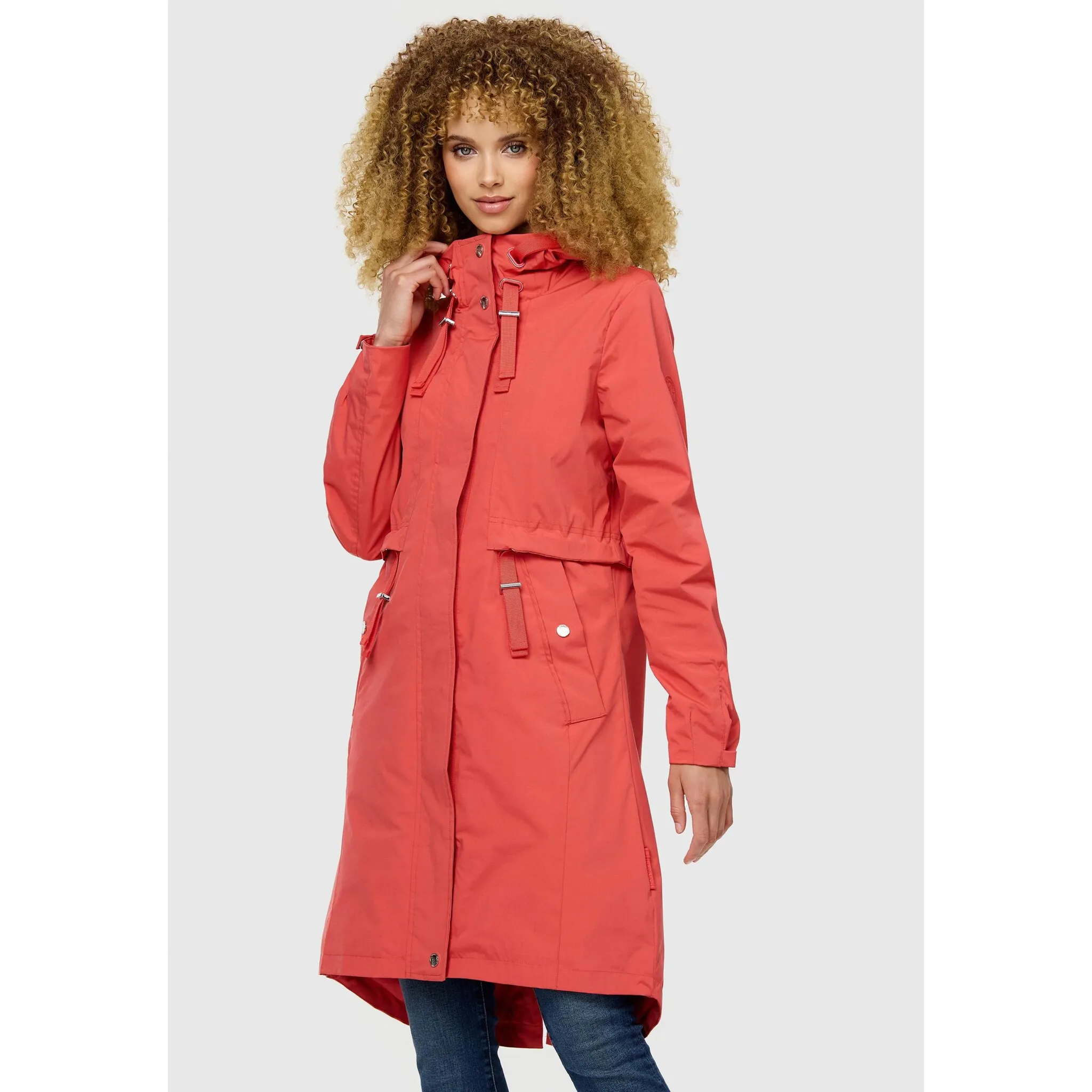 Полупальто Наваху "Silberperlee", стильное водоотталкивающее пальто с капюшоном Navahoo, коралловый, Красный, Полупальто Наваху "Silberperlee", стильное водоотталкивающее пальто с капюшоном Navahoo, коралловый