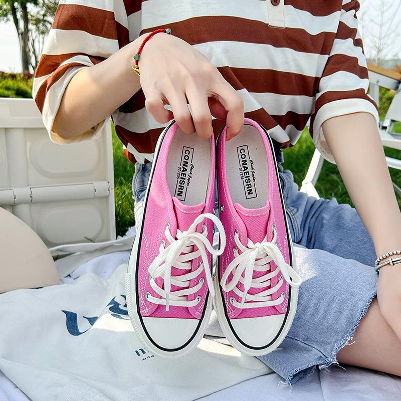 Полутапочки, парусиновая обувь, универсальные маленькие белые туфли для студенток, летняя корейская повседневная обувь, модная парусиновая обувь 40 розовый