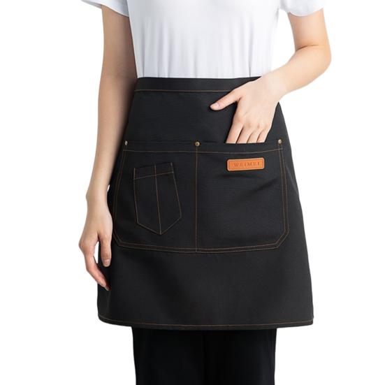 Полуфартук для мужчин и женщин, дышащий кухонный фартук с карманами, стильный чёрный