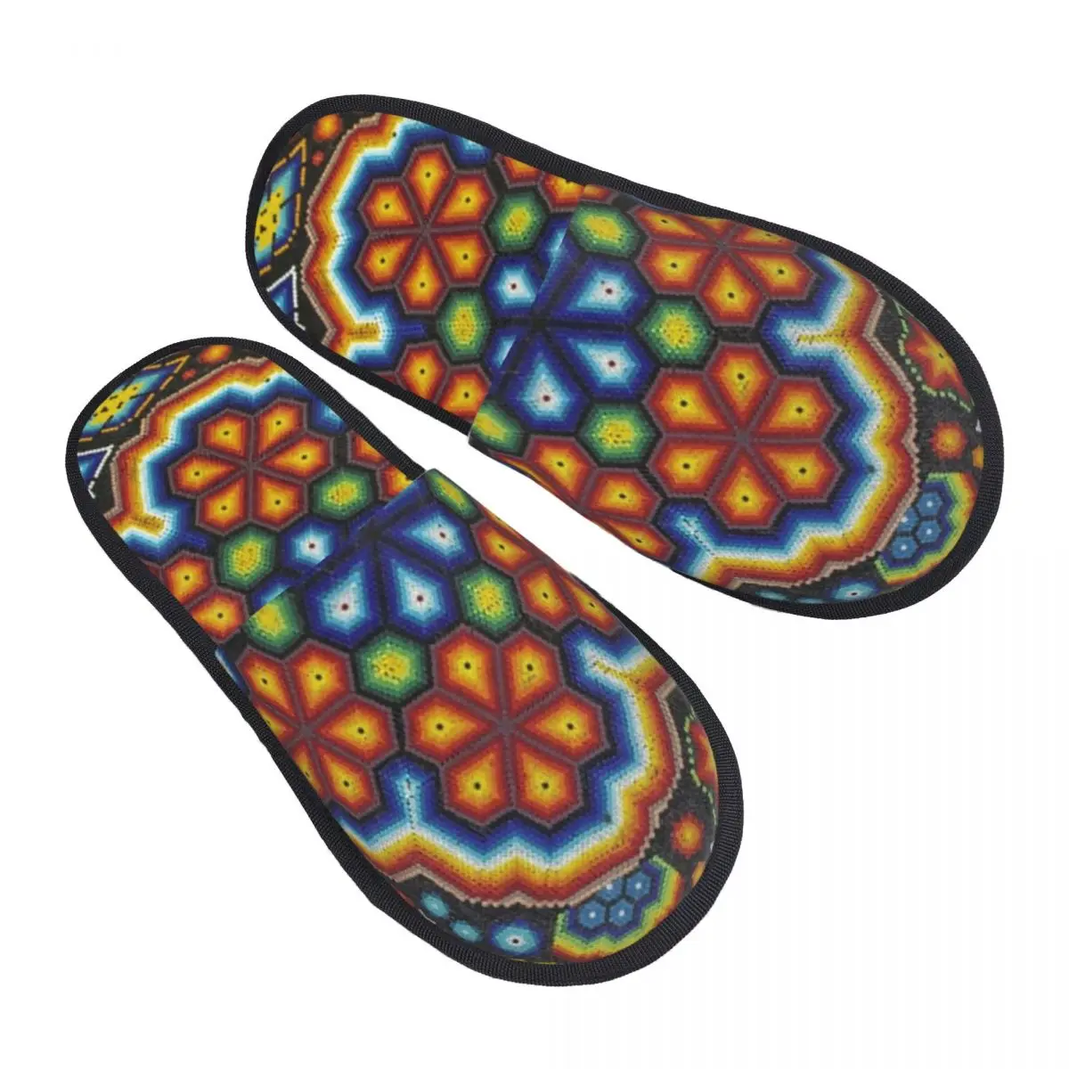 Пользовательские мексиканские Huichol, мягкие домашние тапочки с эффектом памяти, женские удобные теплые Нескользящие тапочки