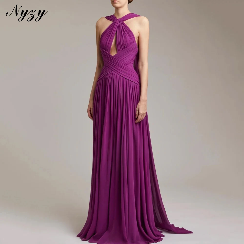 NYZY E740 Couture Chiffon Pleats Evening Dresses Backless Wedding Party Bridesmaid Prom Dresses Sexy