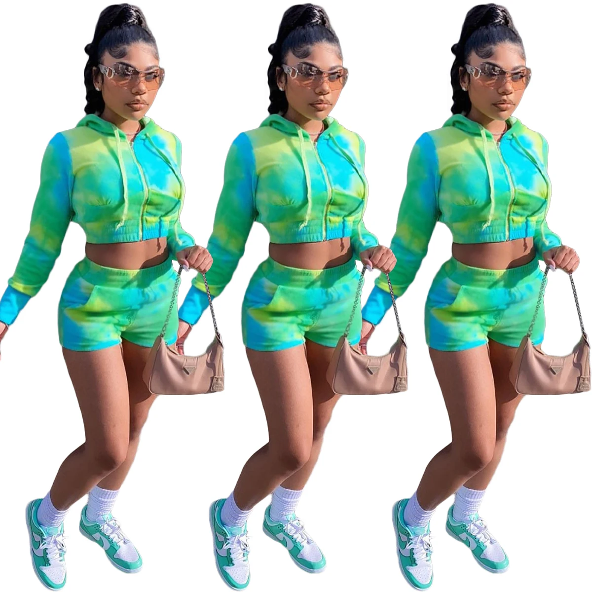 Foma JZH8073 Casual sports long sleeve pocket trouser short set suit outfits for women autumn 2021 ladies sportswear