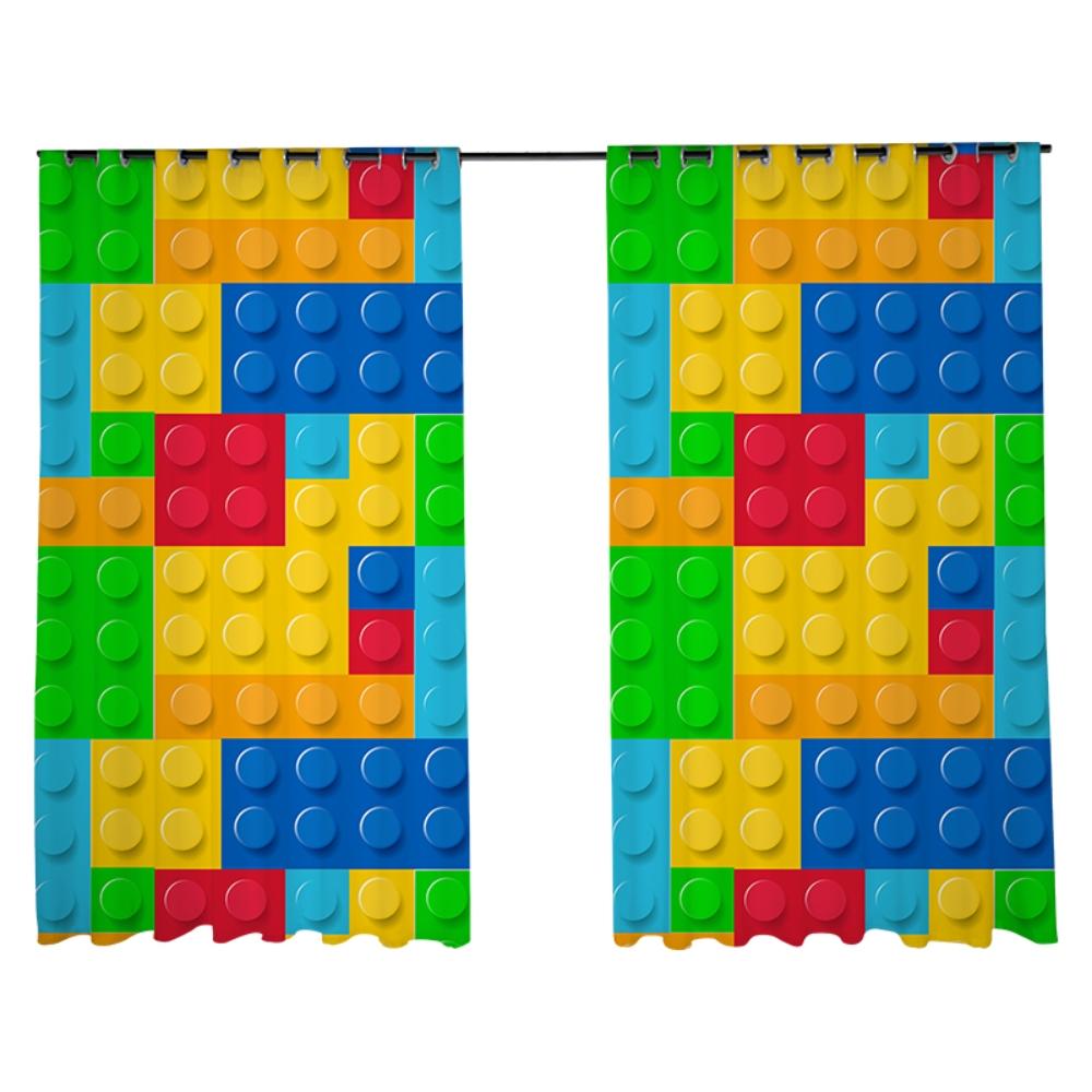 Пользовательский рисунок из мультяшных строительных блоков, украшение для парка развлечений, занавеска для спальни мальчика, занавеска для детского сада, ткань на заказ 2023 г., новинка 2x100W240H(CM)&Hook