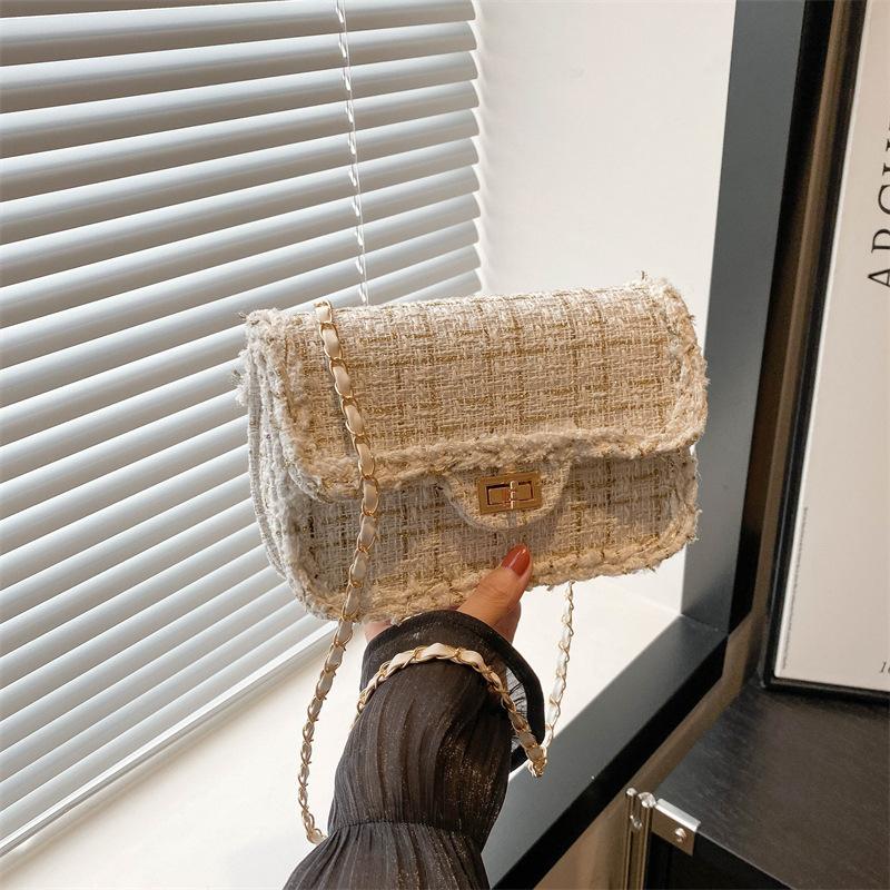 Популярная в этом году женская дорожная новая модная шерстяная клетчатая сумка-мессенджер простая цепочка персонализированная наплечная маленькая квадратная сумка белый