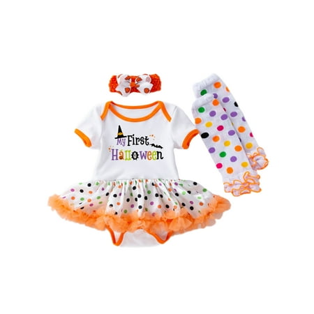 Lumento Newborn Loose Party 3Pcs Outfit Suit Buttons Mesh Romper Outfits Cute Jumpsuit Dress+Socks+Headband Orange 73