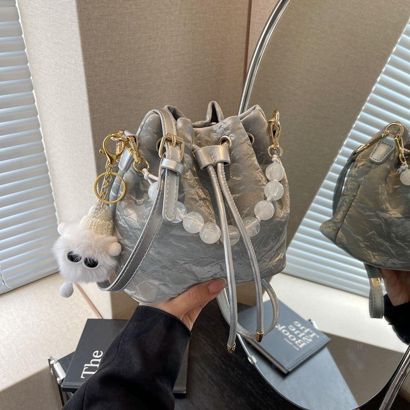 Популярная маленькая сумка 2024 года, новая модная плиссированная сумка-ведро, высококачественная сумка с бисером, сумка-мессенджер через плечо серебряный