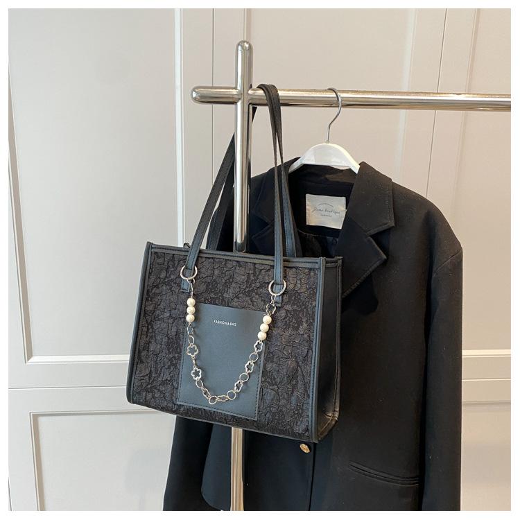 Популярная модная сумка женская 2024 новая зимняя большая сумка через плечо с жемчужной цепочкой нишевый дизайн сумка подмышкой чёрный
