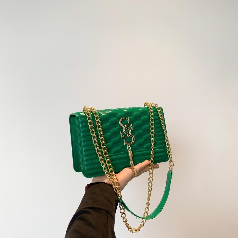 Популярная модная текстурированная сумка с углублением для женской сумки, летняя новая простая однотонная сумка на одно плечо с цепочкой, маленькая квадратная сумка