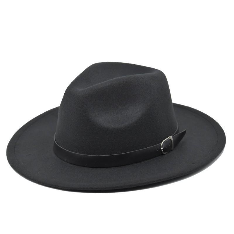 Популярная мужская шляпа Jazz Hat, сезонная, дорожная, универсальная, ковбойская шляпа Western, женская, шерстяная, цилиндр, британская, с широкими полями Adjustable чёрный