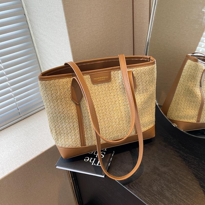 Популярная плетеная большая сумка женская сумка лето 2025 новая сумка-тоут через плечо большая вместимость соломенная сумка хаки
