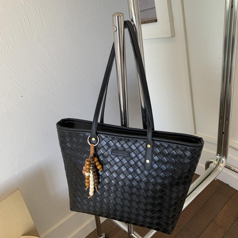 Популярная плетеная сумка в корейском стиле, простая одноплечевая сумка, вместительная сумка-тоут для поездок на работу чёрный