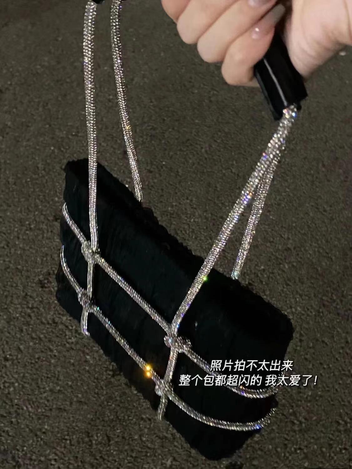 Популярная плюшевая сумка со стразами на цепочке для женщин 2024 года, новая высококачественная фактурная сумка через плечо чёрный