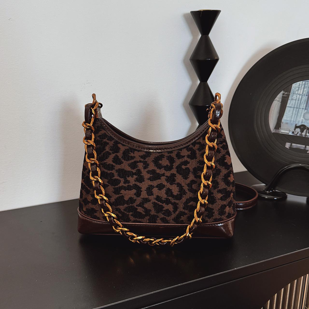 Популярная ретро леопардовая маленькая сумка женская новая осенне-зимняя цепочка на плечо подмышку сумка для通勤 сумка-мессенджер