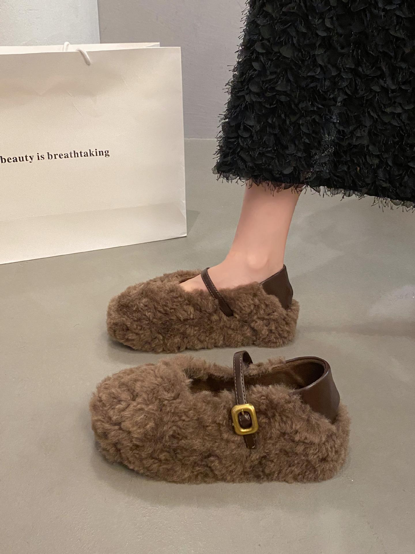 Популярные в интернете туфли из овечьей шерсти с леопардовым принтом для женщин, новая модная повседневная бархатная теплая обувь-бини осень-зима 2025 40 темно-коричневого