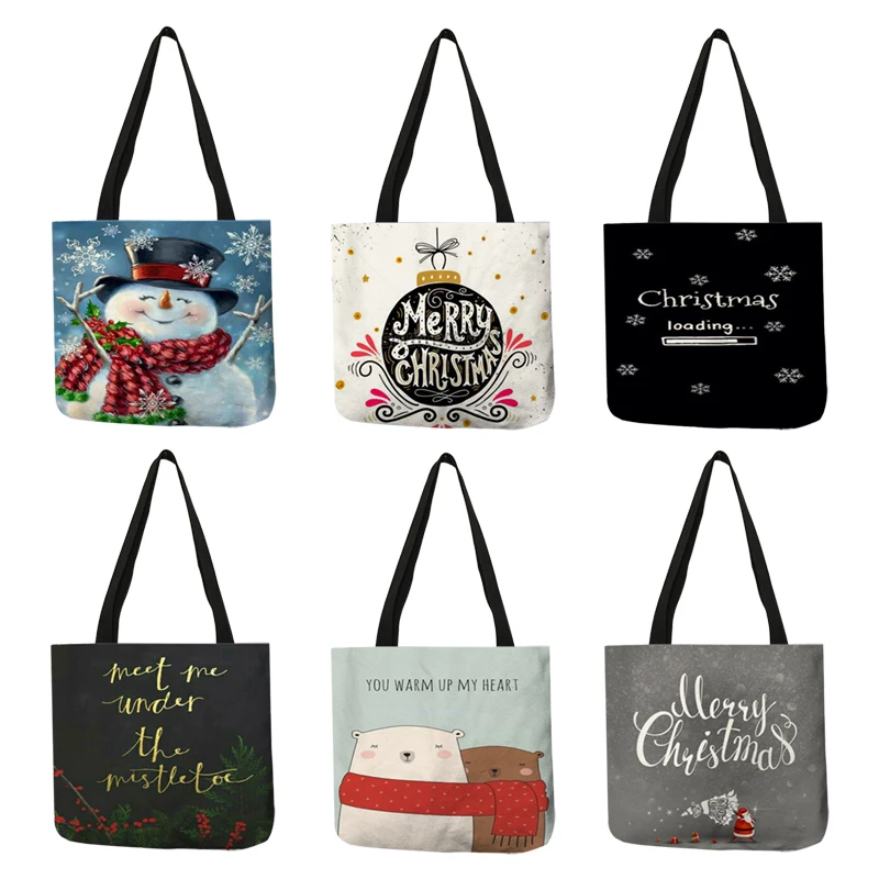 Популярные женские дизайнерские сумки Schoudertas Dames дизайн Рождество Картина Снеговик Сумки эко льняной хозяйственная сумка