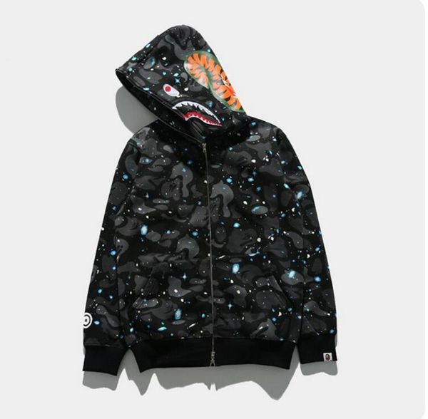 Популярные логотип голова акулы, самец и самка замечены звездное небо, толстовка
