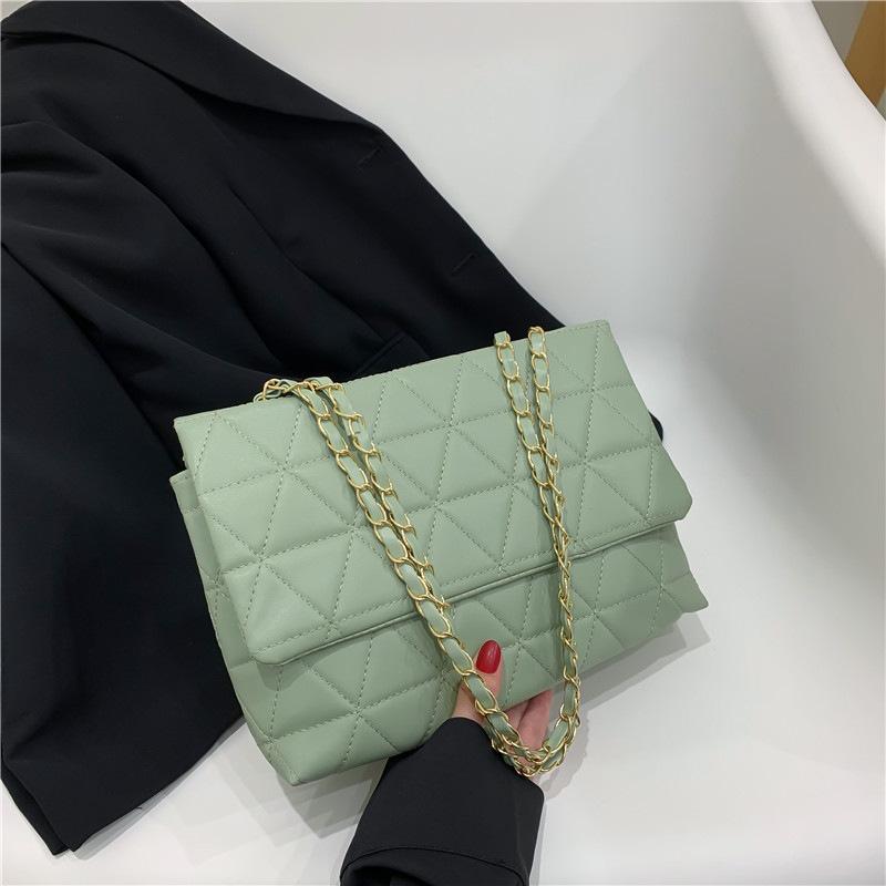 Популярные сумки большой вместимости, новая корейская версия модной сумки через плечо с бриллиантами, женская сумка-тоут с цепочкой из искусственной кожи зелёный