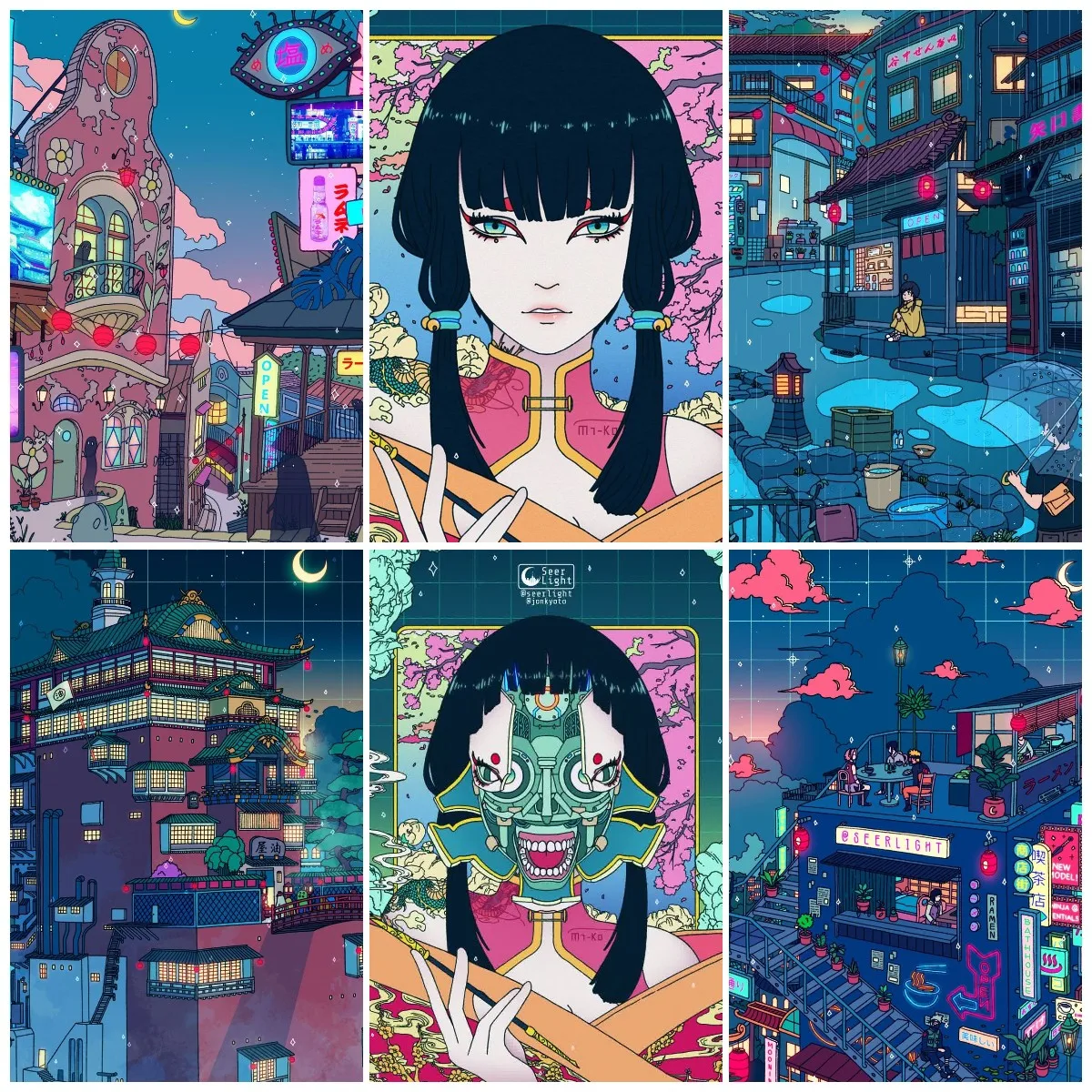 Популярный постер WTQ в стиле «Ночной город», аниме плакаты Seerlight, ретро постер, настенный постер, Картина на холсте, настенное искусство, плак...