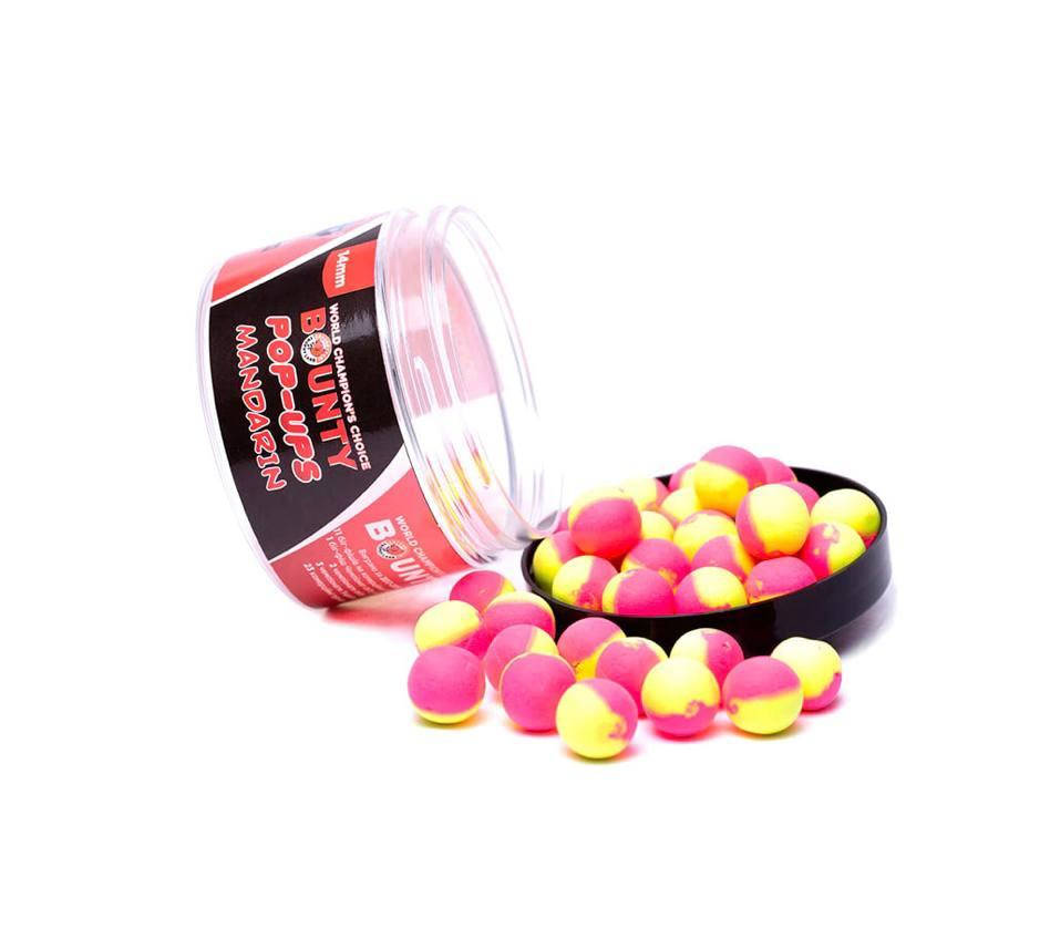 Поп-апы Bounty Pop-Up Mandarin изготовлены из натуральных ингредиентов. Обладают повышенной плавучестью. В своем составе имеют знакомые карповым рыбам компоненты. Разработаны и произведены двукратными чемпионами мира, с применением аттрактантов и ароматизаторов, тем самым подчёркивая свой уникальный состав.