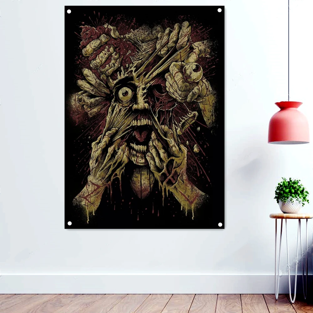 Порванное лицо, тяжелые металлические художественные баннеры, искусство на стену, страшный кровавый фон, обои, флаги, татуировки, постеры ро...