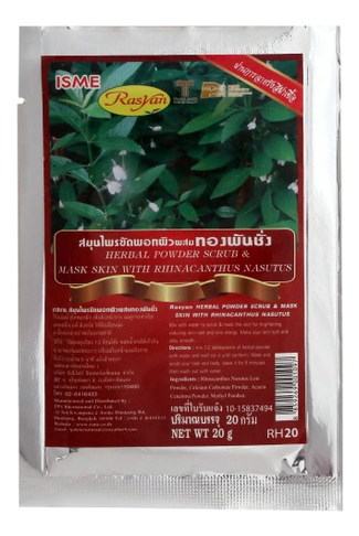 Купить порошковая маска-скраб для лица и тела с экстрактом ринакантуса Rasyan Herbal Powder Scrub & Mask Skin With Rhinacanthus Nasutus 20г ISME, средство для очищения кожи лица по выгодной цене в интернет-магазине, смотреть фото и отзывы на Randewoo.ru