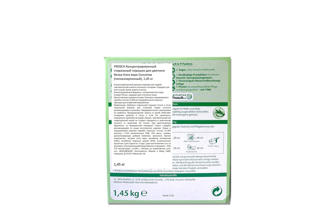 Порошок стиральный Frosch Колор Алоэ Вера для цветного белья 1450 г